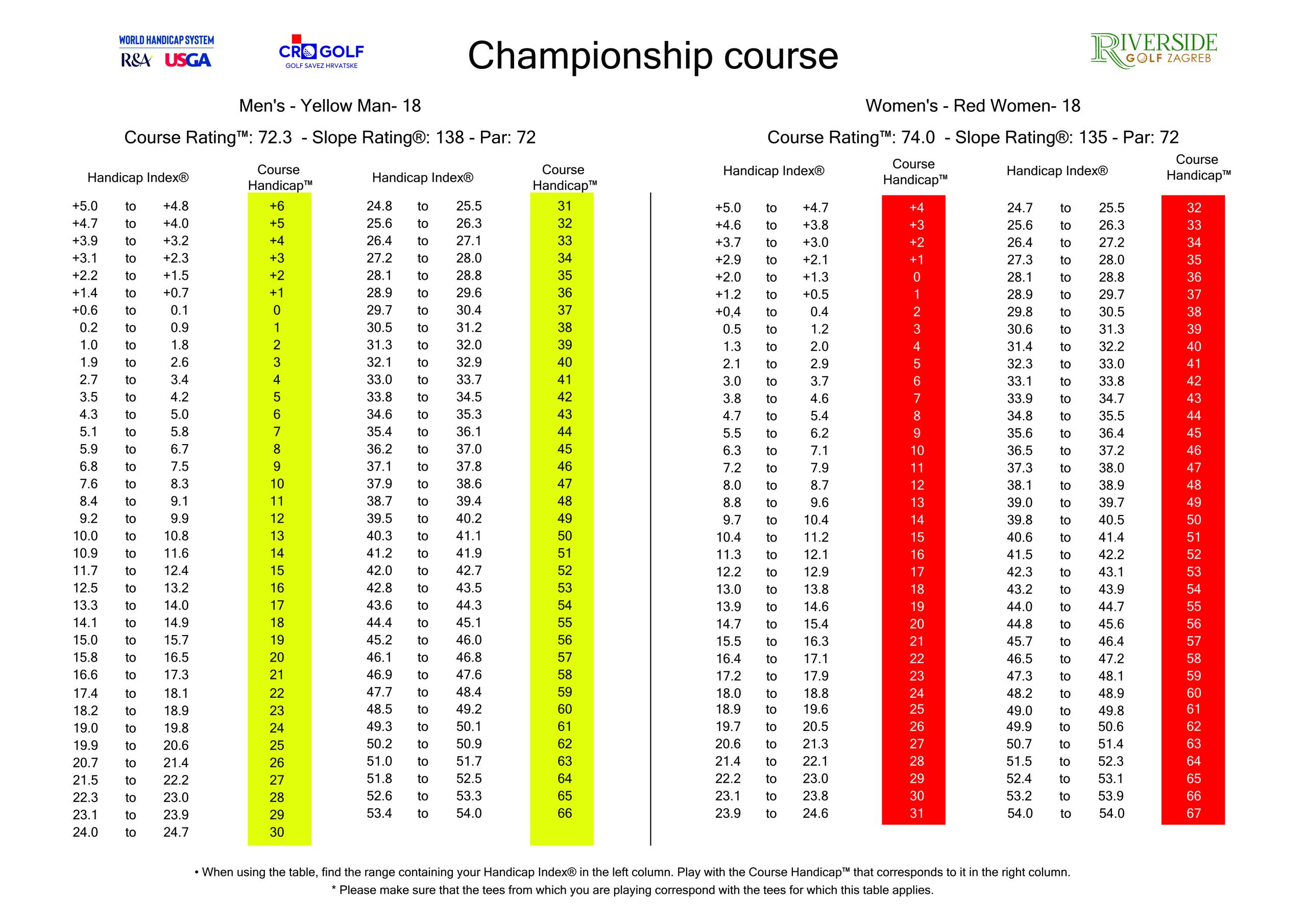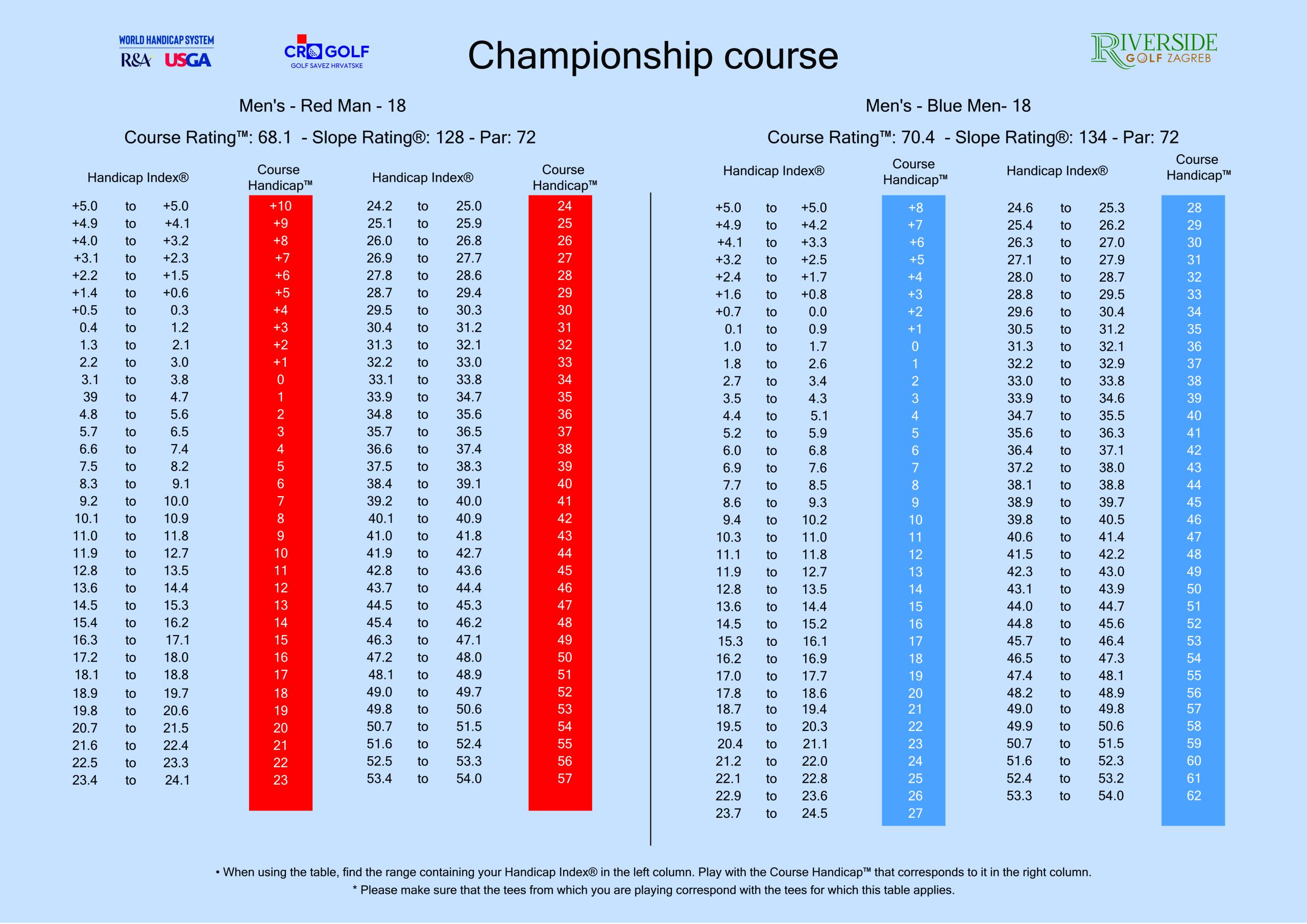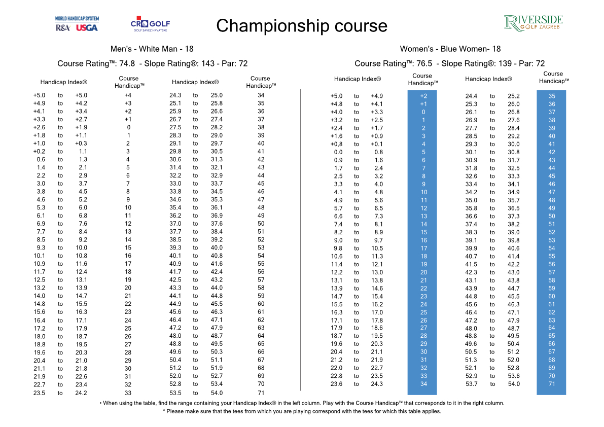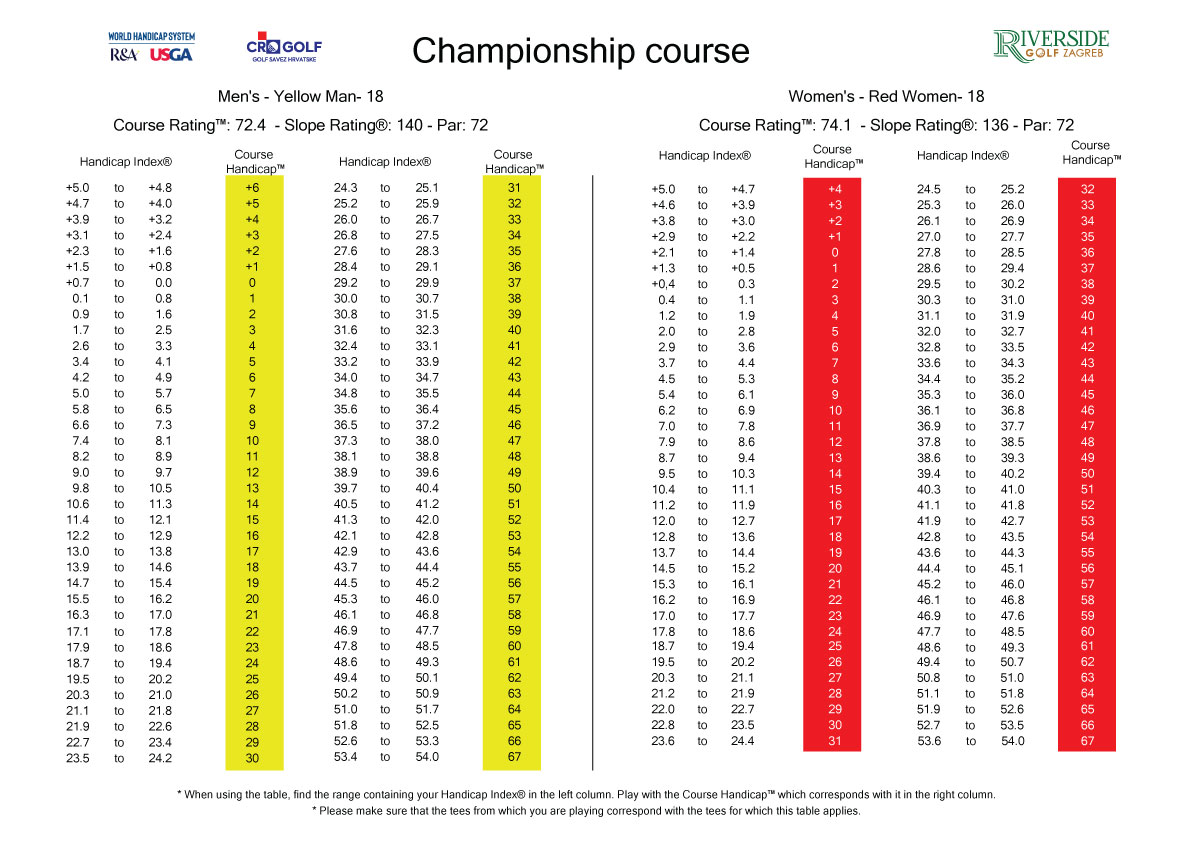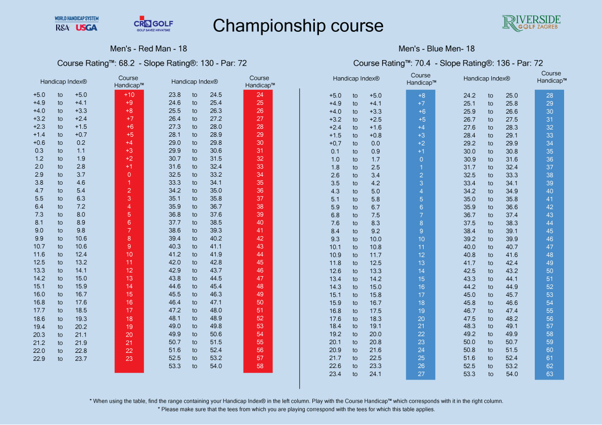 Course handicap table